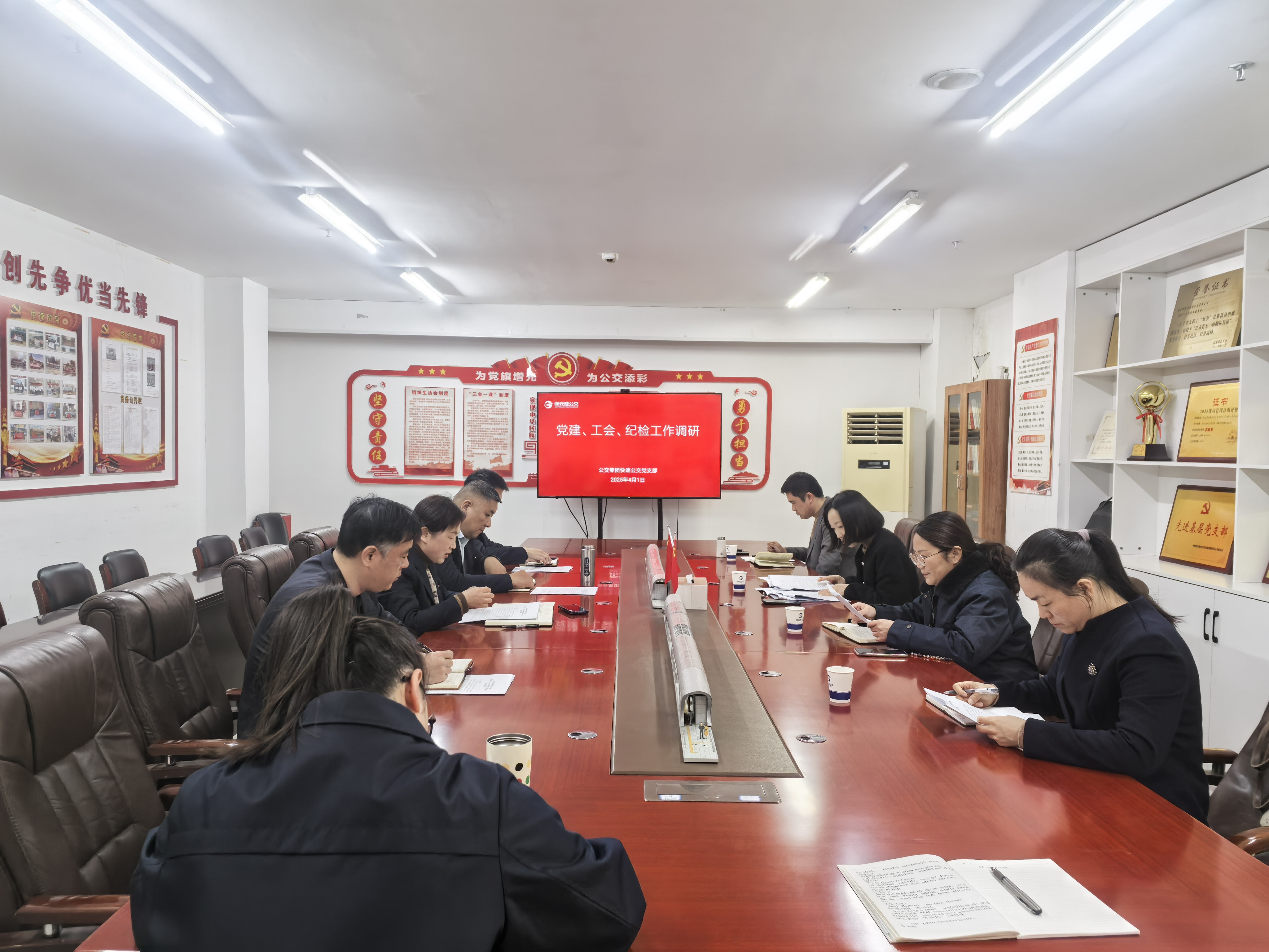此次調研主要圍繞黨建、紀檢、工會年度重點工作、品牌建設等方面開展。座談會上,黨支部書記張作對黨建、紀檢、工會2025年度品牌建設工作思路及全年任務分解落實情況進行專題匯報,調研人員對佳連公交各項工作中的實際情況、亮點特色、品牌建設等方面提出相關建議和要求。