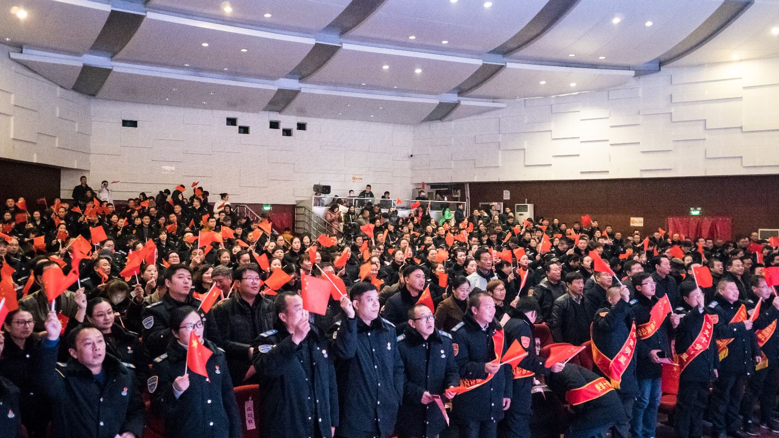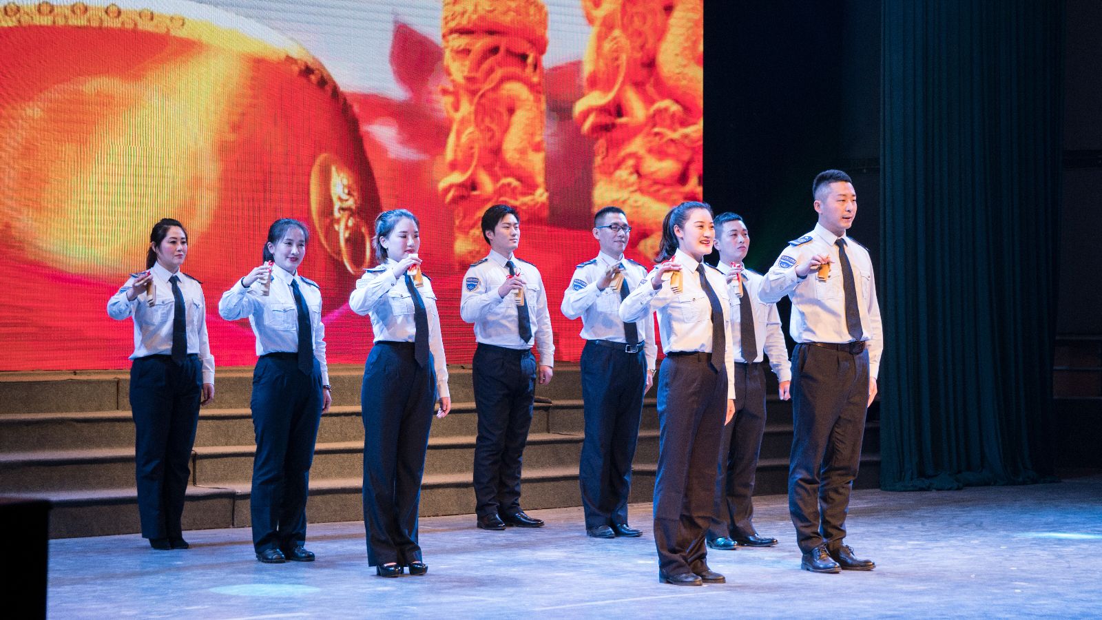 晚會開始前,各權屬單位以飽滿的熱情展開了拉歌活動,歌曲此起彼伏,各單位有備而來,一首首耳熟能詳的歌曲不僅僅喚醒了公交集團全體職工的美好回憶,嘹亮的歌聲點燃了在場所有觀眾的熱情,舞動的國旗也將晚會的氛圍烘托地愈加濃厚。