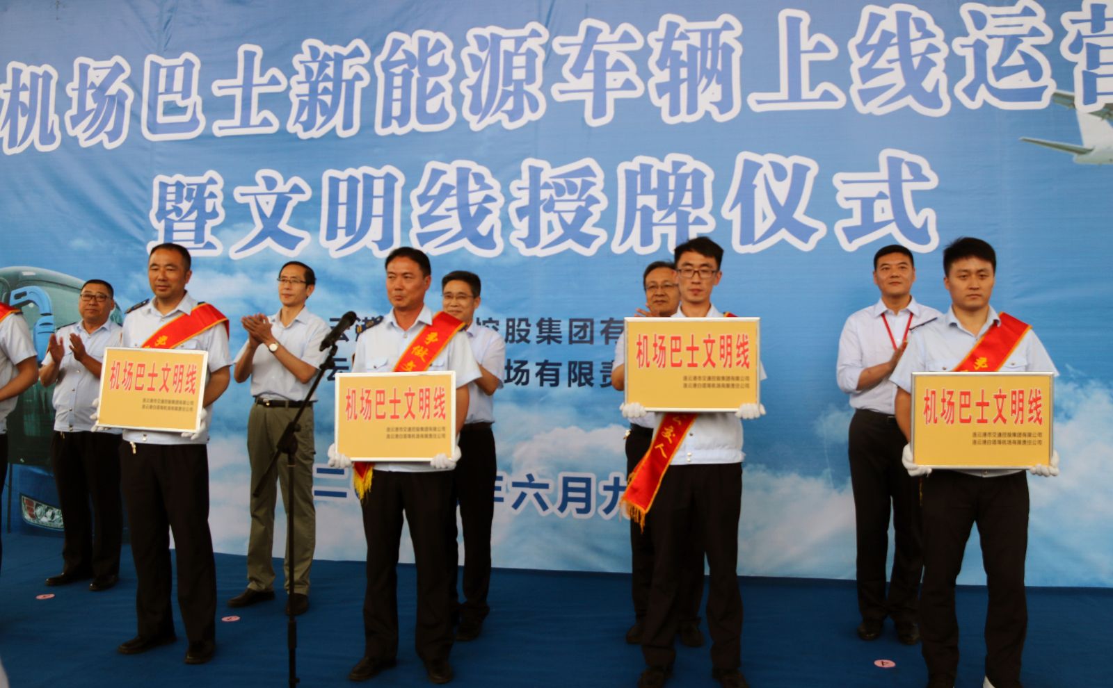 公交集團舉行機場巴士新能源車輛上線運營暨文明線授牌儀式