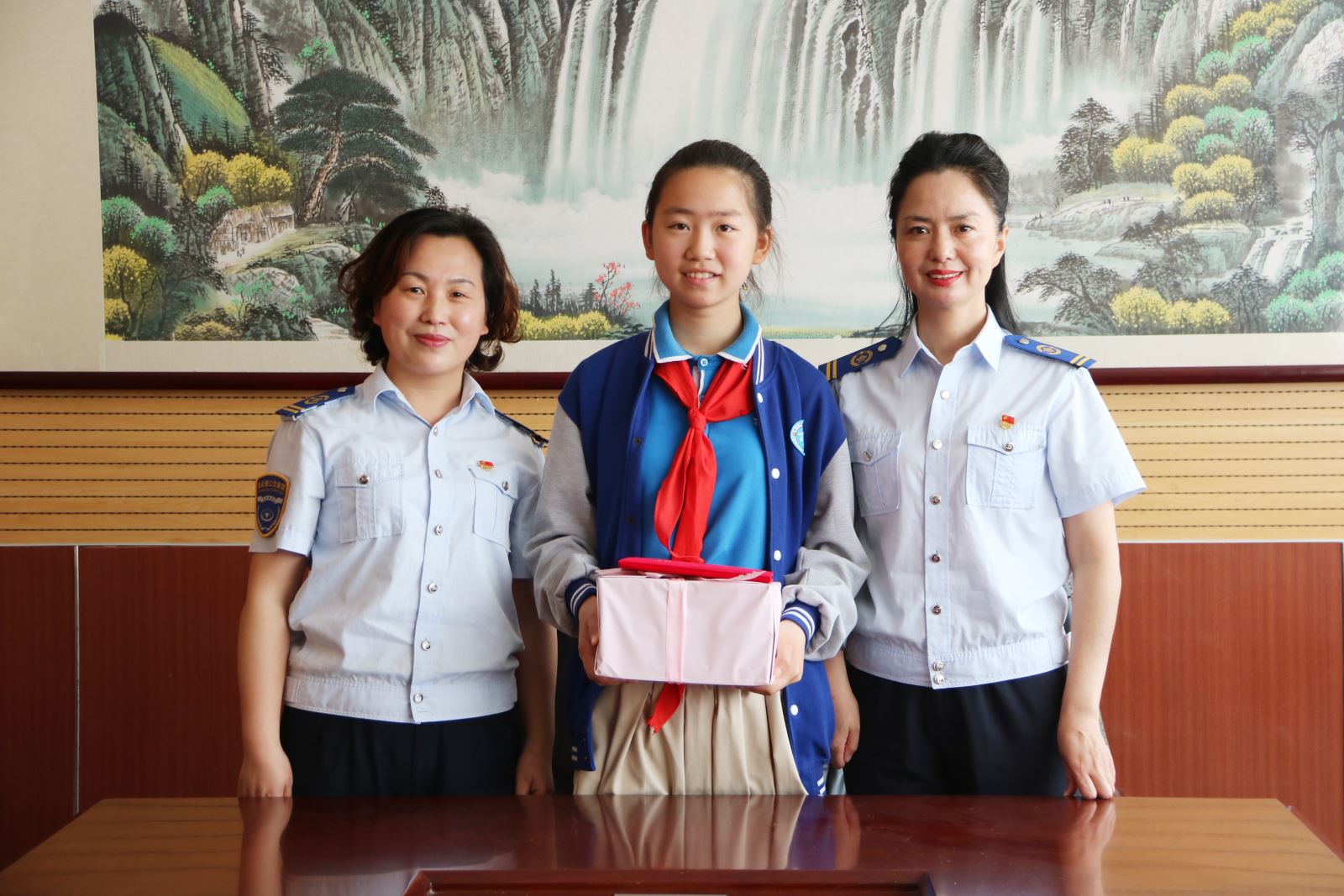 5月30日,江蘇省交通運輸廳黨組成員、副廳長金凌,廳副巡視員、機關黨委書記陳萍 , 連云港市人民政府副市長陳書軍及市公交集團黨委書記、總經理周文君一行來到海寧小學看望范夢茹同學,聘請她為“江蘇‘文明交通文明出行’形象使者”,并通過開展主題班會的形式向同學們發出文明交通、文明出行的倡議,現場也對公交集團駕駛員李方毅進行了慰問獎勵。活動后,公交集團也向范夢茹同學發出邀請,聘請她為公交集團“文明交通小使者”,為她送上了聘書與小禮物。