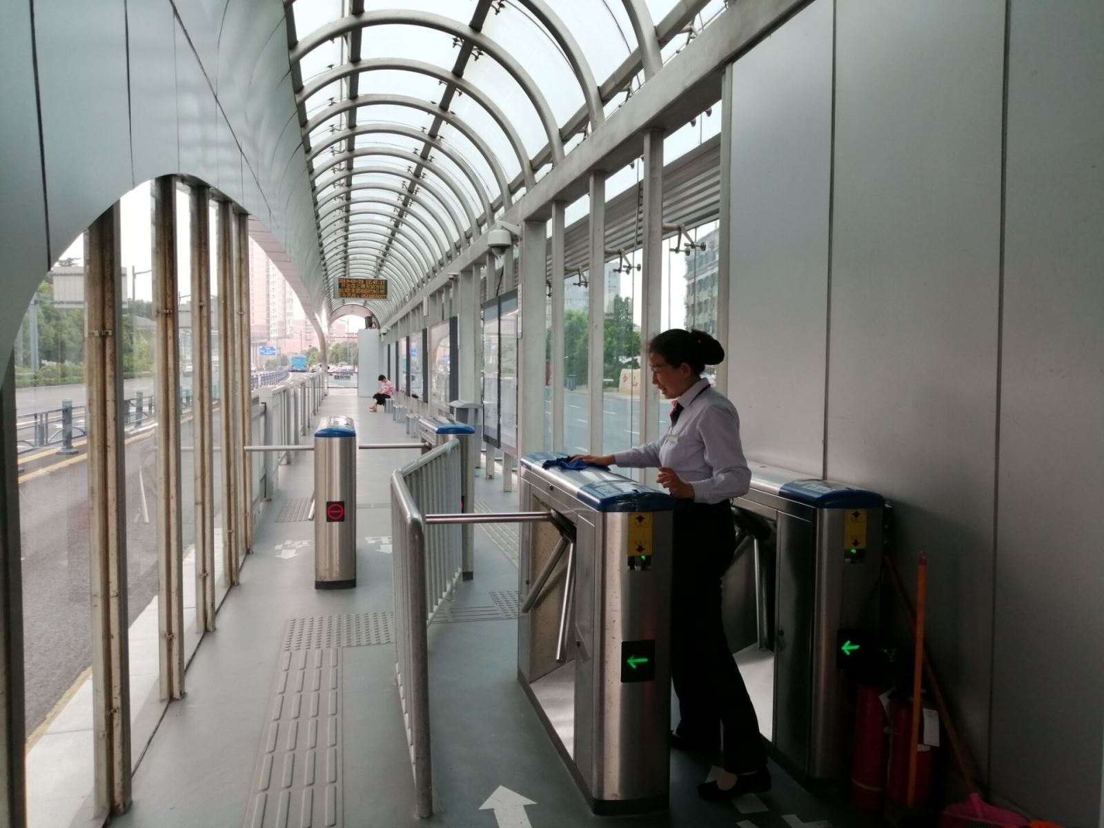 在BRT院前站,有一名80歲左右的老年乘客,幾乎每天都要從站臺獨自乘車往返,每次,老人都會推著一輛手推車,用來放置購買的物品,但進出站時很不方便。只要看到老人,陳新梅就會遠遠的迎上前去,微笑著和老人打招呼:“老人家,今天又出來轉轉啦?”一邊說著一邊接過老人的手推車,將老人攙扶進站臺。老人的臉上也是從開始的歉意到后面拉著陳新梅的手說:“閨女,你上班啦,今天又麻煩你啦。”陳新梅都會笑了笑說:“不麻煩,沒事,誰還能不老啊?”